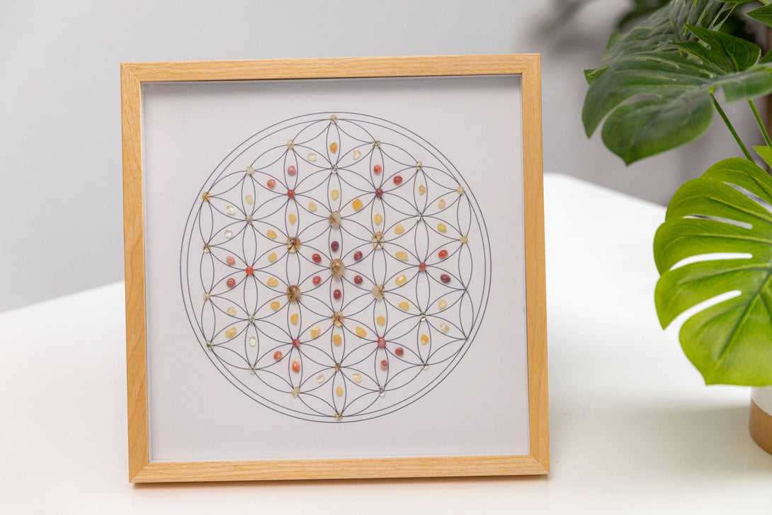 Ignite your imagination and tap into your full creative potential with the Creative Energy Crystal Grid, a radiant fusion of vibrant stones arranged in the timeless Flower of Life geometry—an ancient symbol of creation, flow, and expansion.