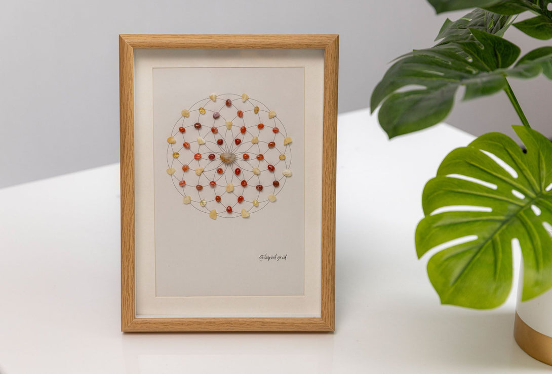 Framed in natural wood, this grid blends artful beauty with powerful energy—perfect for creative spaces, studios, or anywhere your ideas come to life.