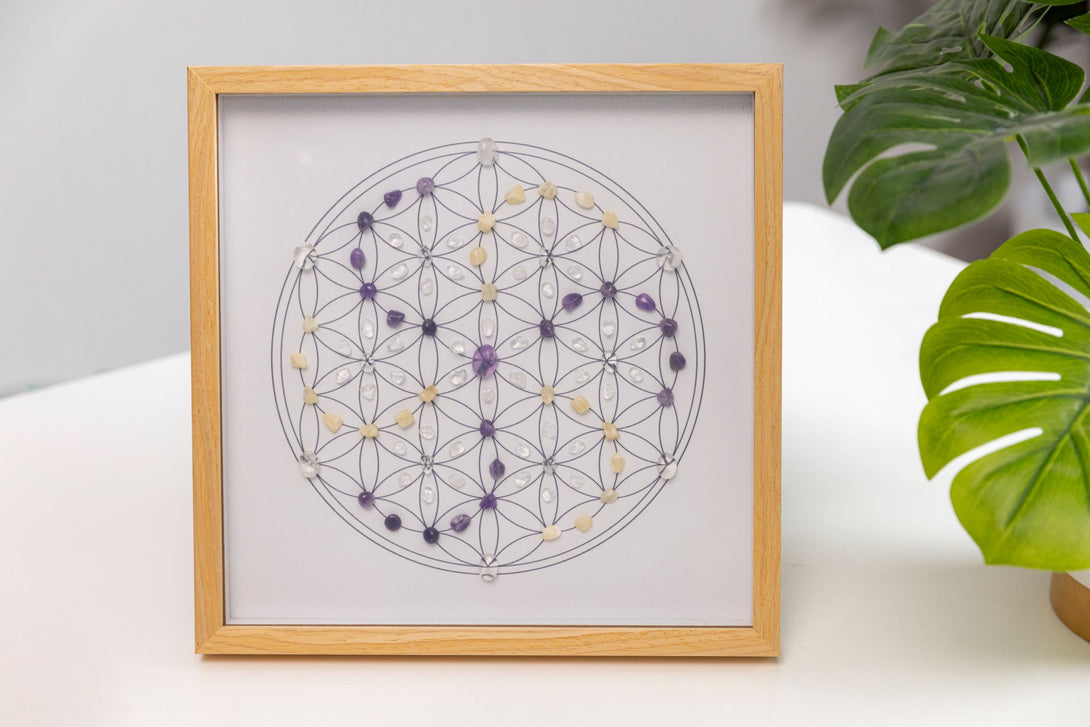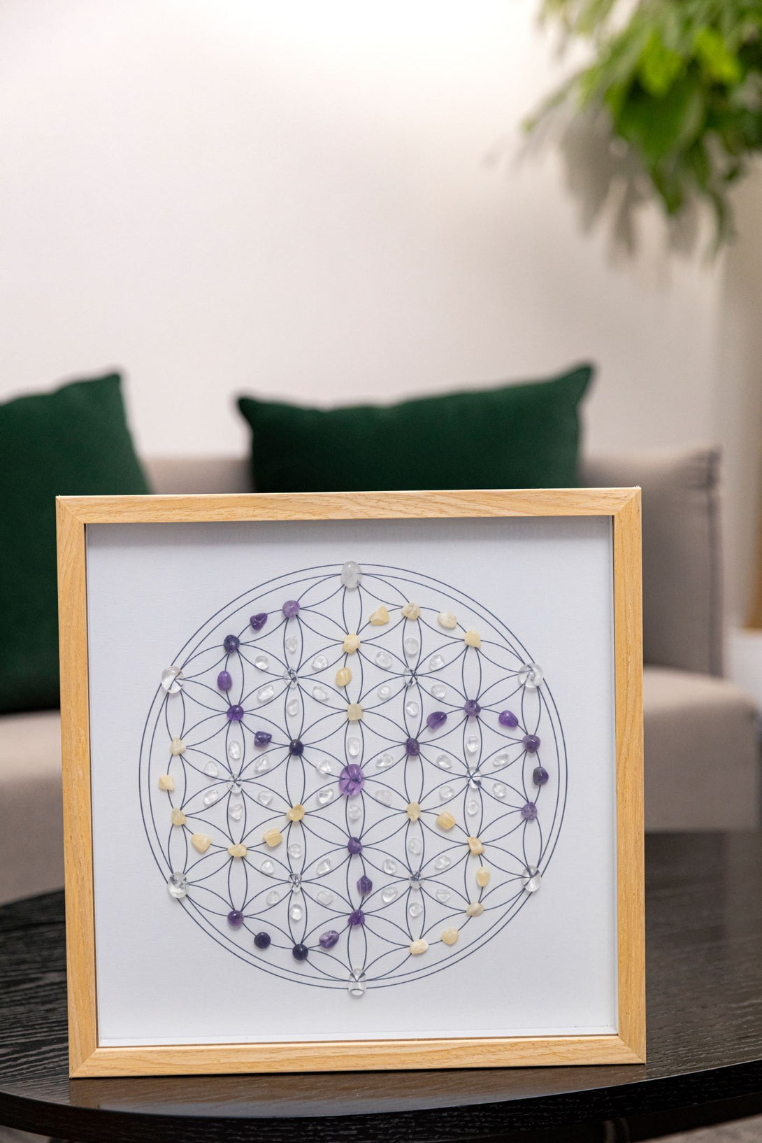 Sharpen your mind and enhance mental flow with the Focus & Memory Crystal Grid, arranged in the sacred geometry of the Flower of Life—a timeless symbol of universal intelligence, cognitive harmony, and interconnected thought.